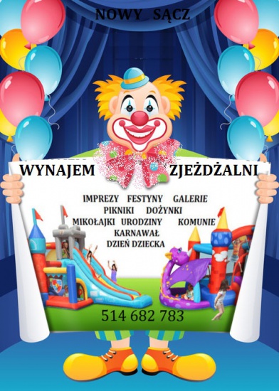 WYNAJEM URZĄDZEŃ : dmuchańce, zamki dmuchane, zjeżdżalnie dmuchane na różnego rodzaju imprezy dla dzieci i dorosłych.